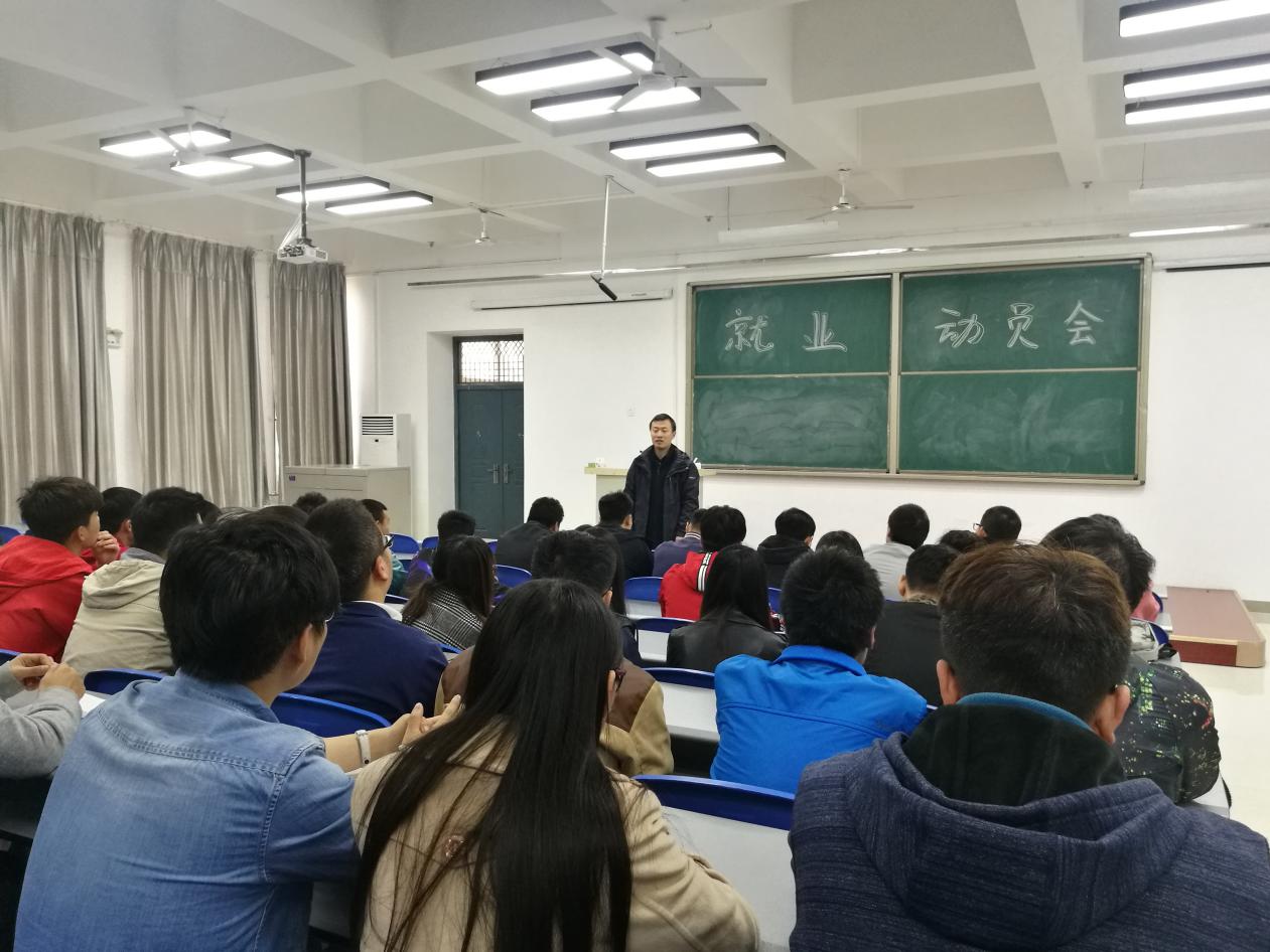 动员大会一开始,杨光从两大方面对应届毕业生进行动员。帮同学们分析了当前应届毕业生就业的形势,随着我国经济增速逐渐放缓和毕业生数量持续增加,就业困难问题一直存在,但同学们更应该清楚的看到职业的多元化发展,就业岗位和就业平台其实并不少,杨光鼓励同学们做好充分就业准备,大胆拓宽就业渠道,自信果敢、积极就业。