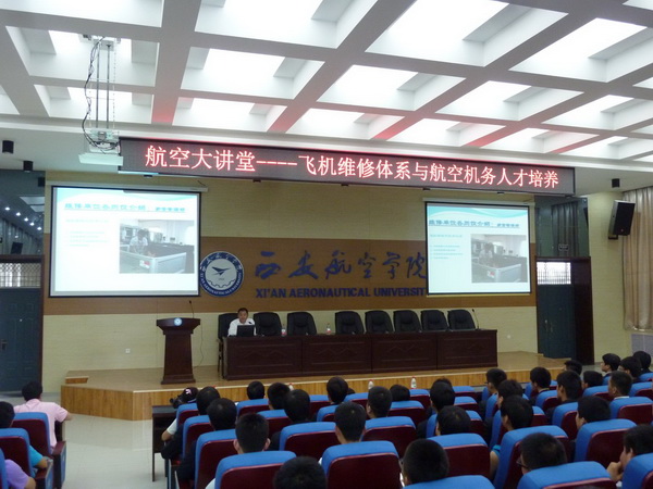 5月24日下午,由科技处和航空系共同举办的航空大讲堂“飞机维修体系与航空机务人才培养”在公司阎良校区学术报告厅举行,本次学术报告由海航航空技术有限公司西北维修基地总监周贵敏主讲,航空系主任宋文学、党总支书记张耀虎、航空机电设备维修专业负责人余斌高及航空系相关专业员工近400人聆听了学术报告,报告会由宋文学主持。