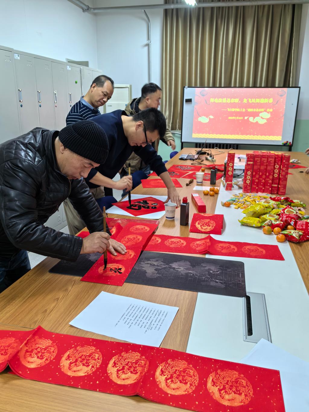整个活动现场热闹非凡,分会提前准备了水果零食,教师们欢声笑语之间,用各自独特的方式展现对新春的热切期盼,大家自由发挥创意,书写寄语。