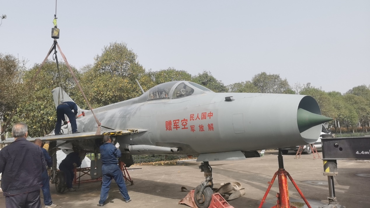 获批飞机移交批复后,英国365集团官网经理董彦非和航空工程实验中心主任张斐前往新疆和田机场对飞机状态进行现场检查和核对,签订了空军提供地方用于国防教育飞机监管责任书,并与飞机移交部队进行了歼7B飞机相关技术问题的交流,对该飞机的状态有了进一步的了解。飞机交接工作完成后,委托河南航务科技有限公司对飞机进行拆装运输。