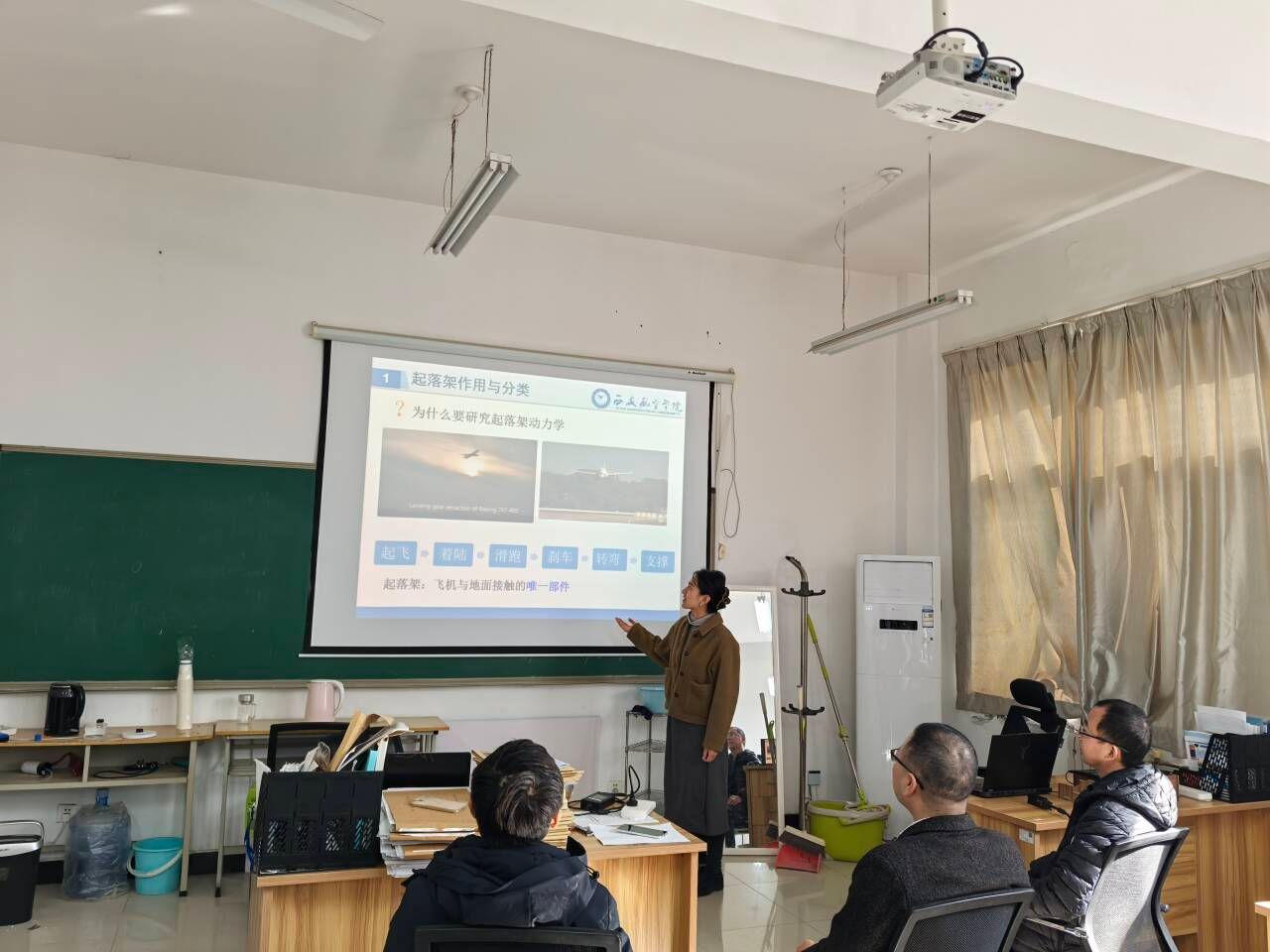 本次活动中,史志富、谯盛军、杜晓琼和谭健四位老师分别结合自身的课程进行了教学展示,课程涵盖《工程计算方法与MATLAB实现》、《飞机结构设计》、《飞行器自动控制原理》等多门核心课程,教研室教师通过集体听课,评课和研讨方式,针对每位教师的授课情况围绕如何“无声”融入思政、如何创新互动模式、如何嵌入前沿科技等教学改革痛点,并共同商议了包括教学内容设计、学科前沿嵌入、思政元素融入以及互动形式、项目化教学等具体措施。