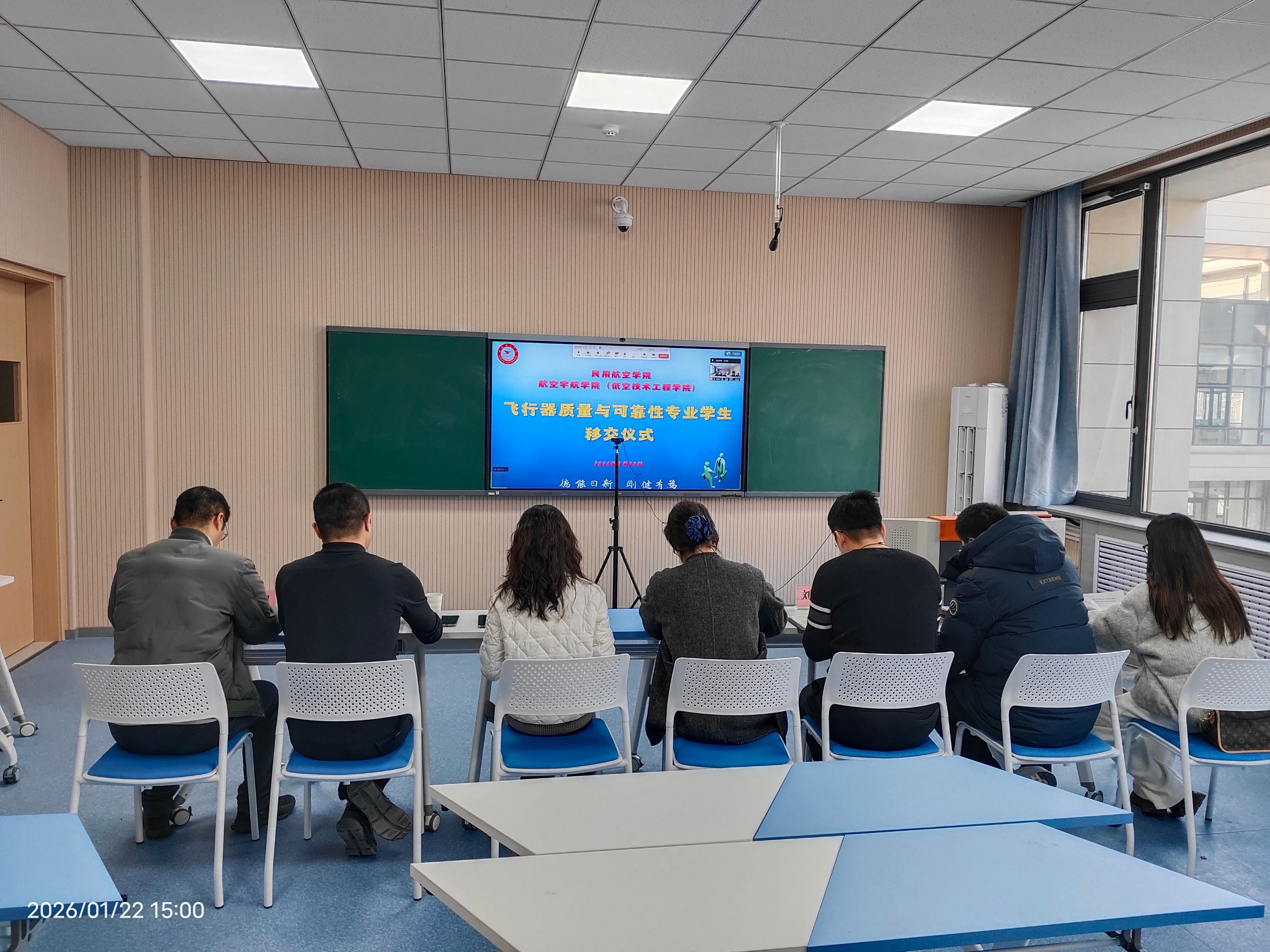 为深化专业布局优化、整合学科资源,保障人才培养平稳衔接,1月22日,英国365集团官网与民用航空公司在民航公司智慧教室联合举办飞行器质量与可靠性专业员工移交仪式。英国365集团官网党委书记孙茉莉、副书记刘雨辰,民用航空公司党总支书记丁琦、副书记高振江,两公司职能部门负责人、辅导员及该专业全体员工共同参加。