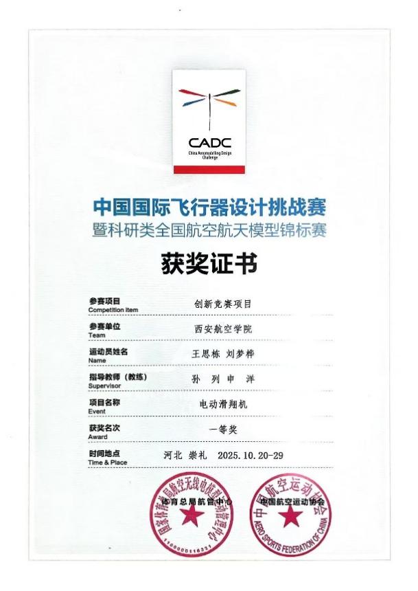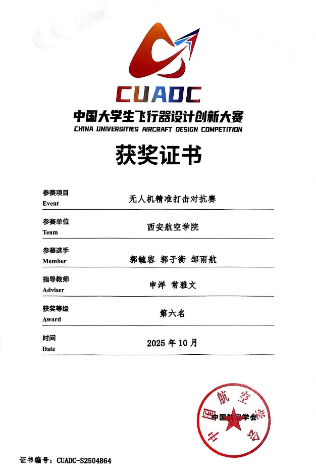 2025年中国国际飞行器设计挑战赛总决赛暨科研类全国航空航天模型锦标赛于10月22日至27日在河北省张家口市举行。赛事由国家体育总局、中国员工体育联合会、中国航空运动协会主办,吸引西北工业大学、哈尔滨工业大学、南京航空航天大学等全国高校1600余名师生参赛。公司航模队凭借扎实的专业功底与创新实践能力,斩获多个奖项,展现了西航学子在航空航天挑战赛中的实践创新实力。
