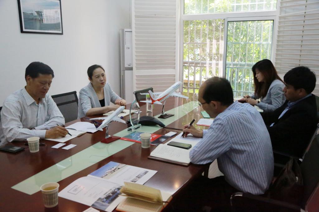 参观该公司办公区后,双方就飞行技术专业申报进行了交流探讨该公司市场营销部经理刘小南向郝红武一行介绍了公司已经取得的资质、团队力量以及飞行训练基地等情况该公司培训部经理彭明权就学员培训工作做了详细的介绍说明。郝红武就飞行技术专业申报工作相关材料的准备、双方共同培养员工的模式、飞行训练的实施、员工停飞后的安置等一系列设想该公司领导做了深入细致的讨论。