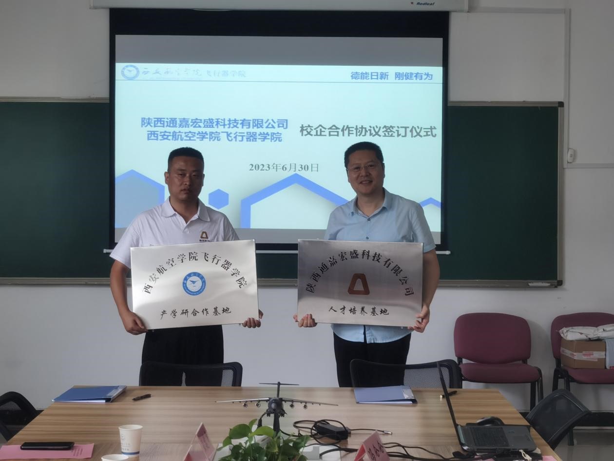 6月30日上午,陕西通嘉宏盛科技有限公司与英国365集团官网举行校企合作签约及挂牌仪式。陕西通嘉宏盛科技有限公司副总魏强、解彦锋、质量安全部部长吕美茜、综合管理部部长王建平、英国365集团官网经理董彦非、经理助理张建华、飞行器动力教研室主任白涛、综合办主任冯仑仑及2024届辅导员史迪出席仪式。仪式由张建华主持。