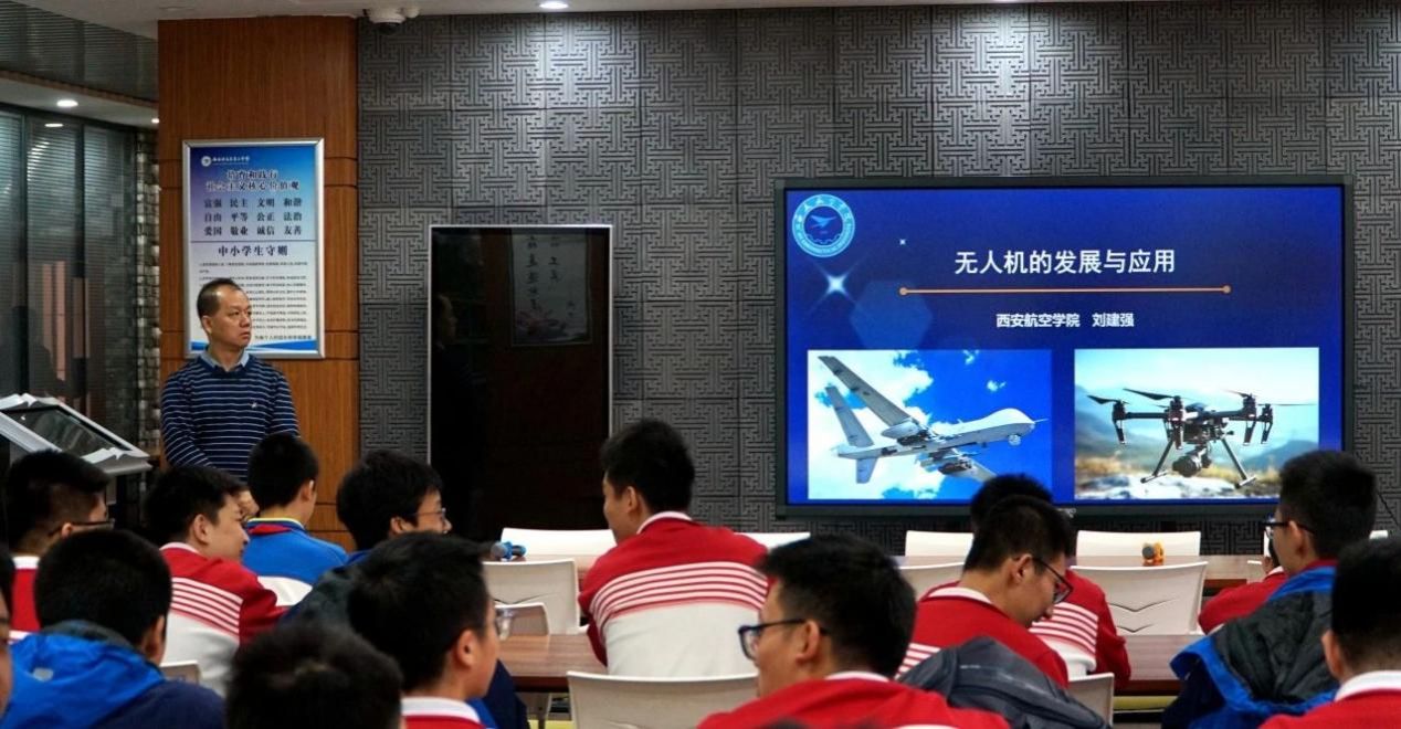 公司党总支书记刘建强、网红科普老师飞行器设计教研室教师梁毅辰分别为员工进行了《人机发展与应用》和《航空航天发展史》两场讲座,毕业于远东二中的公司两名员工为他们的学弟学妹们带去了航空科技发展史与中国飞机模型展览展示。刘建强还就公司基本情况、取得的成绩等向公司进行了介绍,与公司教导处有关领导进行了交流。