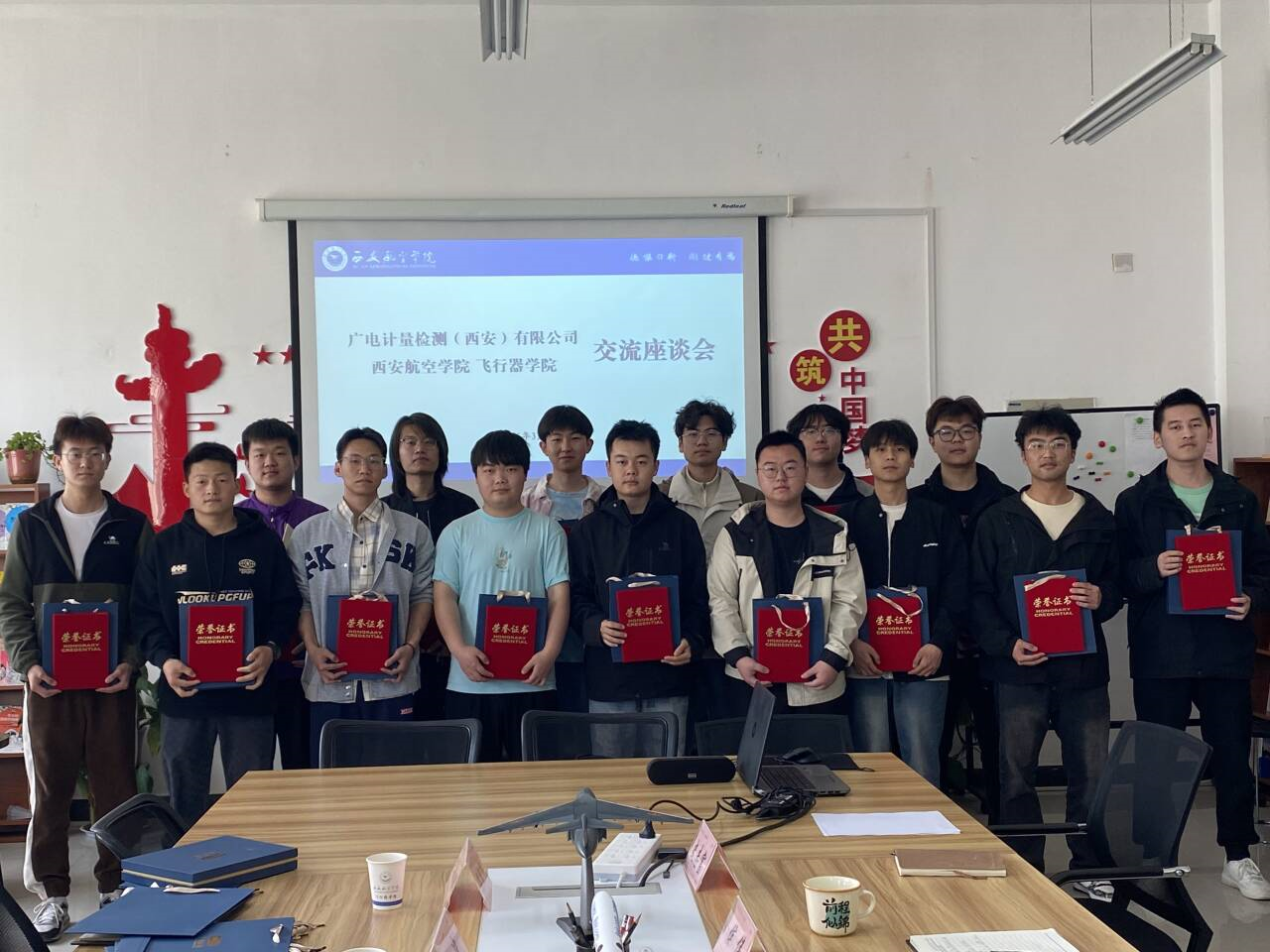2025年1月,飞行器设计与工程专业15名员工赴蒲城机场完成为期4周的生产实习,本次实习为专业首次参与国内飞机试验科研项目。座谈会上,广电计量(西安)有限公司对英国365集团官网员工在实习工作过程中参加AG600降雪试验的表现表示充分的肯定,并对英国365集团官网给予的支持表示感谢。向公司赠送了“传道授业,育时代栋梁;校企携手,谱发展新篇“,并为参与试验的同学颁发证书。