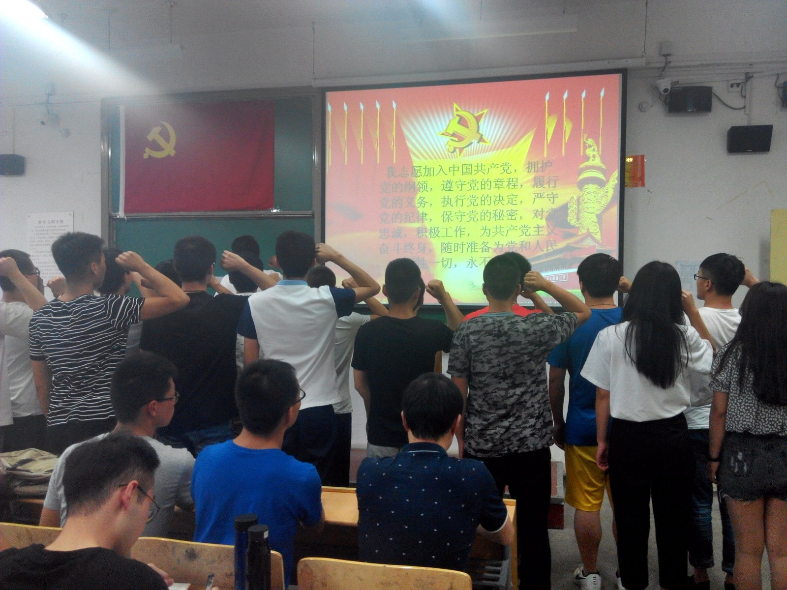 经公司党委审批,公司郑星等29名同学光荣的成为了预备党员。6月8日晚7点,员工党支部在阎教1134教室召开了宣誓大会。员工党支部书记杜长龙及29名预备党员,正式党员和积极分子代表共40人参加了此次大会。