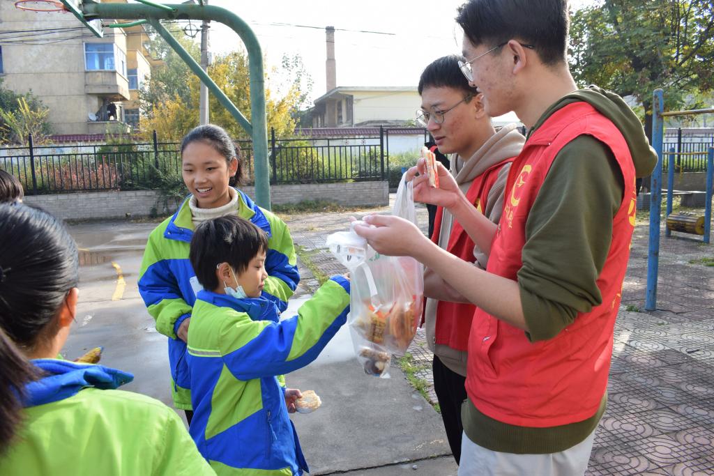 本次社会实践的主题是“深秋送暖、关爱童行”。大家怀揣着一颗颗真挚的心,在乘坐了一个小时的大巴车后终于到达了儿童村,映入眼帘的是一幅幅生机勃勃的景象。初次见面,孩子们热情爽朗、童真无邪,小脸上的笑容显得格外亲切可爱。在整个活动中,大家首先将带去的物资向孩子们进行了分发,并讲述了疫情防控期间的防疫小知识,教会了他们如何正确佩戴口罩和洗手的方法。随后大家为孩子们解答了他们在学习中遇到的困难。最后他们也同积极分子轻松自由的谈天说地,还进行了趣味无穷的体育活动。在离别之际,大家与乐不可支的孩子们进行了合影留念,可以看出他们也是依依不舍,希望爱和温暖可以永远留在他们的心中,帮助他们健康成长。