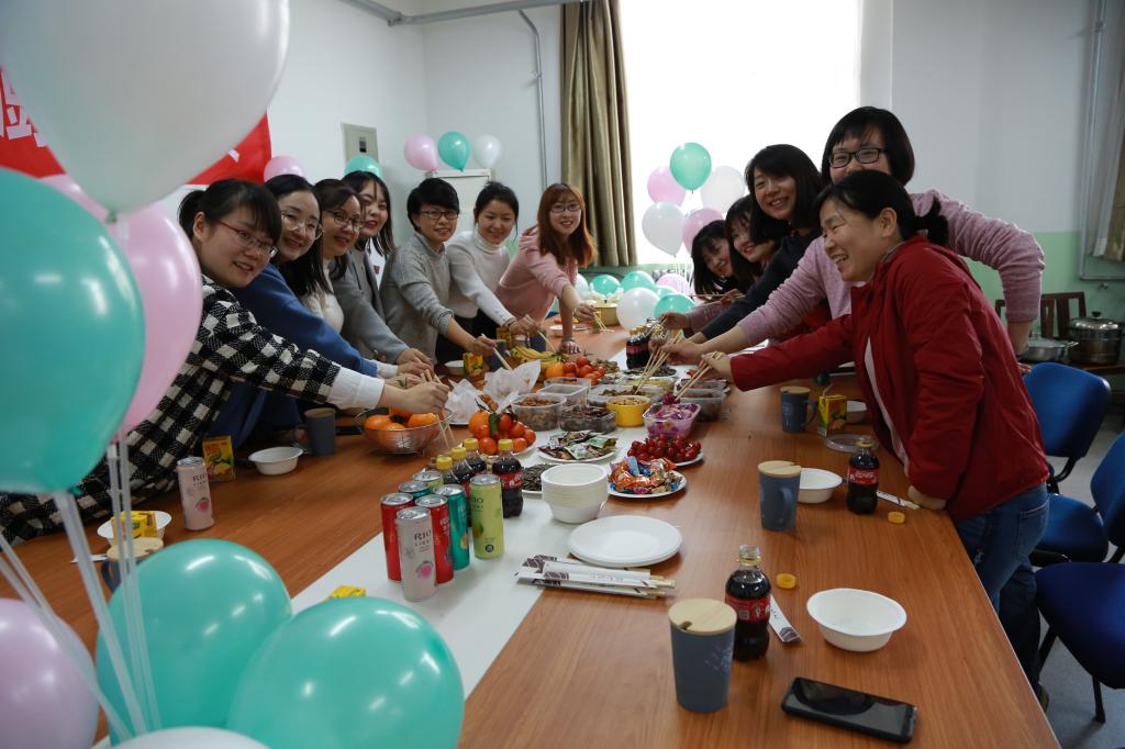 38日下午,为庆祝第109个“国际劳动妇女节,公司分会在沣惠校区教学北楼407教研室举行“英国365集团官网女王厨艺争霸赛”,分会所有女教师参加了此次活动。