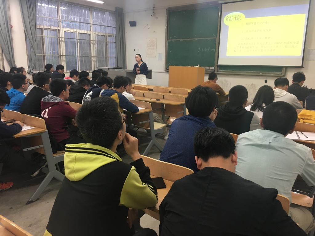 文都考研中心的田老师首先帮同学们做了一个清晰的未来规划,在同学们一致认为考研是最佳出路时,田老师向同学们描述了研究生的意义及就业前景,为同学们理清了考研的动机,讲解了考研的学习重点,同学们深受启发。