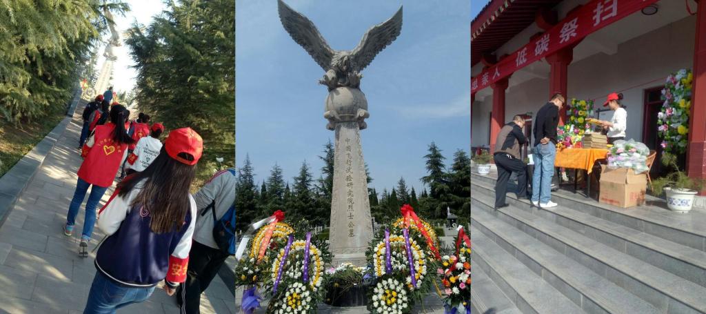 同学们首先向航空烈士纪念碑敬献了花圈,并举行了庄严肃穆的献花和默哀仪式。随后,同学们参观了航空烈士纪念馆,缅怀革命先烈的丰功伟绩,大家无不被航空先烈们英勇的革命事迹和不朽的航空精神深深触动。在园区工作人员的带领下,同学们分成若干个小组在园区内开展了清扫墓园、帮助工作人员售卖祭祀物品等一系列志愿服务活动。
