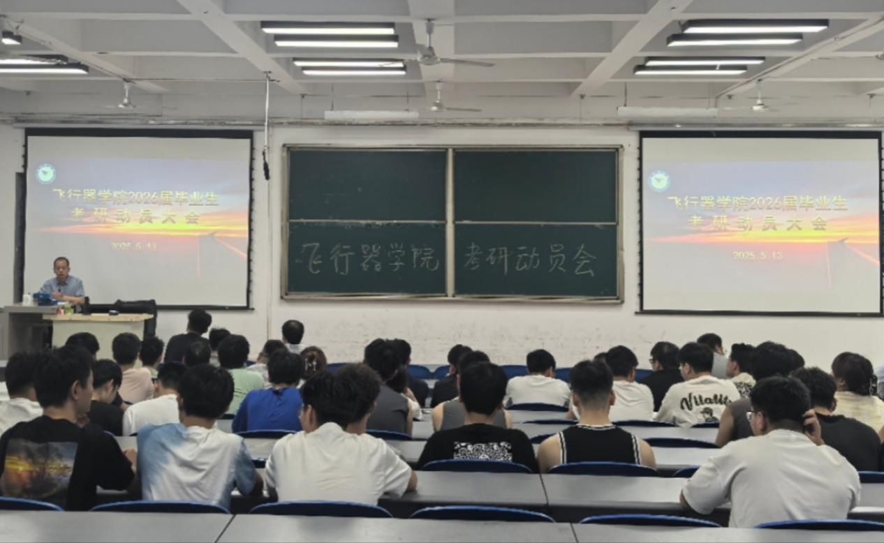 英国365集团官网以“13810”工作思路为指引,加强学风建设,增强员工考研信心,5月13日晚19:00在阎良校区阶梯二召开2026届毕业生考研动员大会。飞行器公司党总支书记刘建强、英国365集团官网经理董彦非、学工办主任杜阳宇,辅导员雷子舒、2026届考研员工参加。