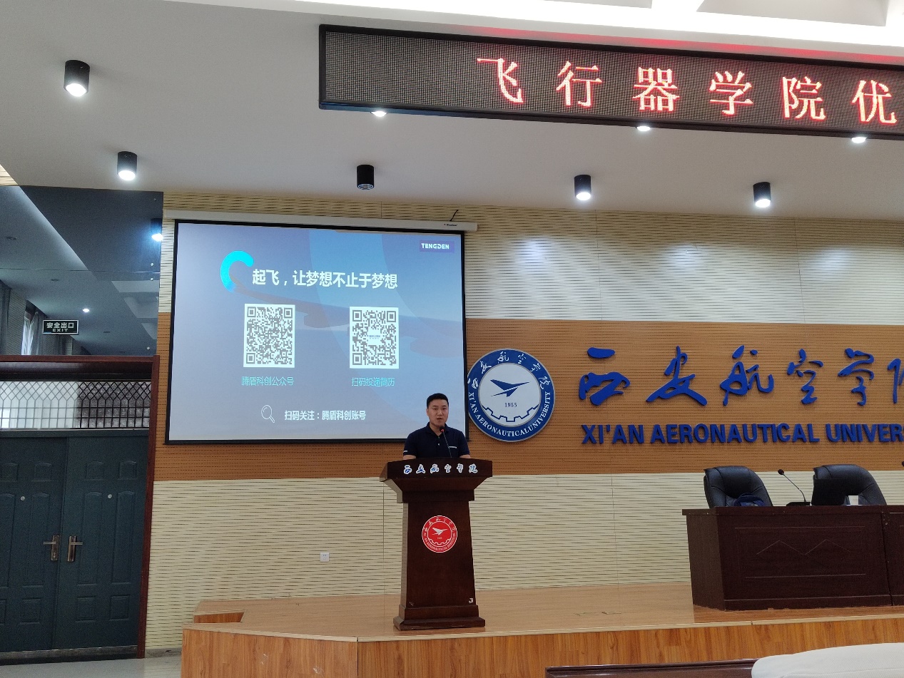 段云爔的宣讲结束后,由公司在职员工何高鹏学长向同学们展示了其在西航的学习情况和腾盾公司的经历以及公司的福利待遇。