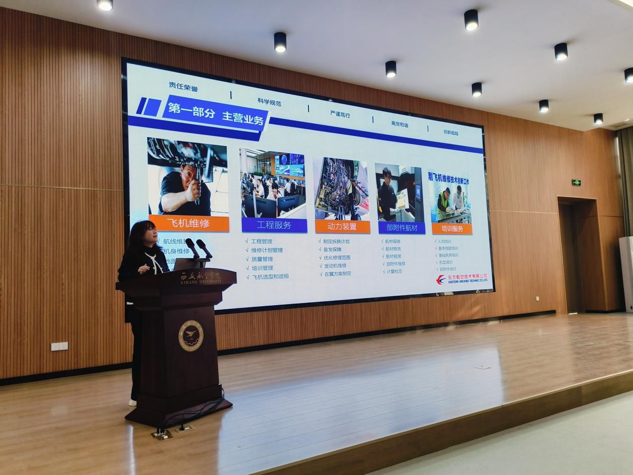 作为西北地区航空维修领域的领军企业,东航技术西安分公司是西安咸阳机场最大驻场单位,也是具备 A320 系列飞机全深度维修能力的核心机构,同时承担着 C919 国产大飞机 “沪陕快线” 的运行保障重任。宣讲会上,公司人力资源部负责人通过PPT 演示,全面介绍了公司发展历程、核心业务布局、企业文化及人才培养体系。重点解读了本次招聘的飞机维修工程师岗位需求,详细说明任职要求、薪酬福利及职业晋升路径,并特别强调公司为应届生打造的 “定制化培训计划”,涵盖 CCAR-147 部机型理论培训、模拟机实操训练等专业赋能环节,让在场员工对职业发展前景有了清晰认知。