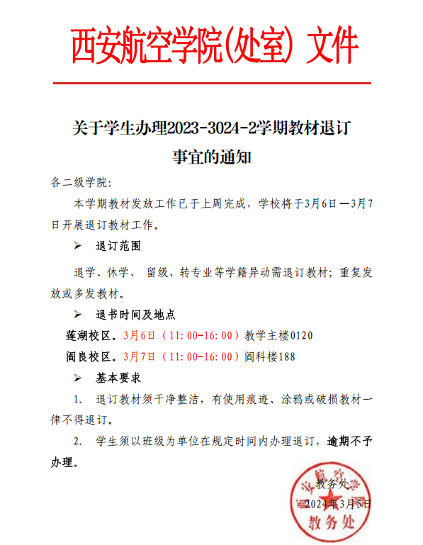 关于员工办理2023-3024-2学期教材退订事宜的通知