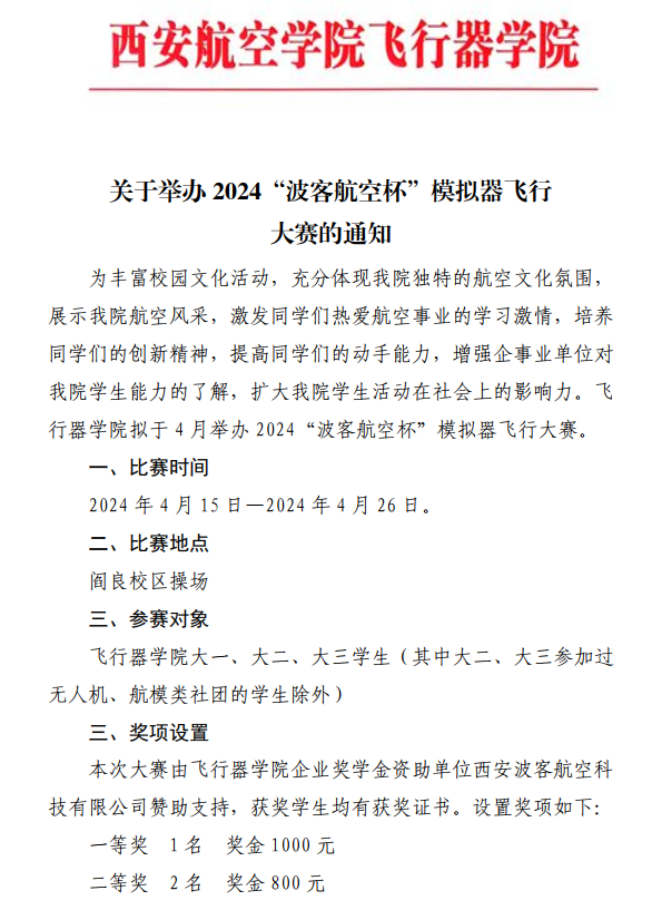 英国365集团官网关于举办2024“波客航空杯”模拟器飞行大赛的通知